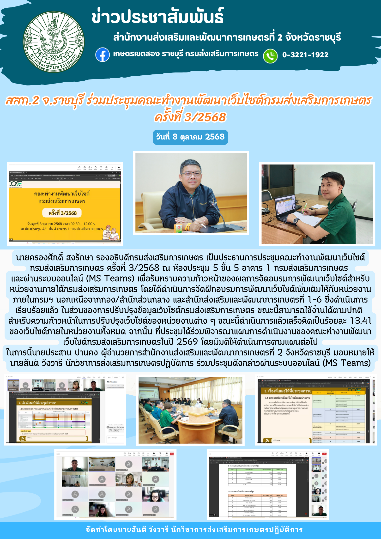 สสก.2 จ.ราชบุรี ร่วมประชุมคณะทำงานพัฒนาเว็บไซต์กรมส่งเสริมการเกษตร ครั้งที่ 3/2568