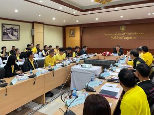 ณ ห้องประชุมโครงการส่งน้ำและบำรุงรักษาโพธิ์พระยา จังหวัดสุพรรณบุรี ร่วมกับหัวหน้าส่วนราชการในสังกัดกระทรวงเกษตรและสหกรณ์ ระดับจังหวัด และผู้ช่วยผู้ตรวจราชการกระทรวงเกษตรและสหกรณ์