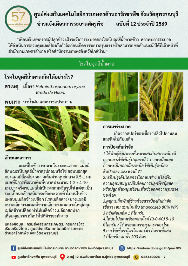 Homeข่าวแจ้งเตือนการระบาดศัตรูพืช ฉบับที่ 12 ประจำปี 2569 เรื่อง โรคใบจุดสีน้ำตาล ข่าวแจ้งเตือนการระบาดศัตรูพืช ฉบับที่ 12 ประจำปี 2569 เรื่อง โรคใบจุดสีน้ำตาลBy admin_doae / 31 มีนาคม 2026 Post Views: 80