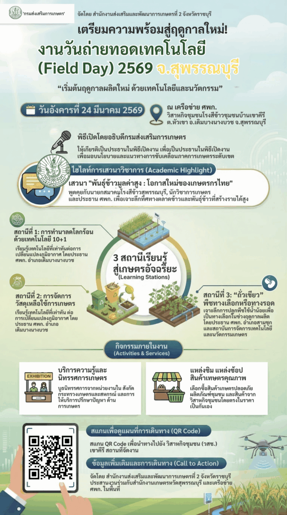 Homeสำนักงานส่งเสริมและพัฒนาการเกษตรที่ 2 จังหวัดราชบุรี ขอเชิญเข้าร่วมงานวันถ่ายทอดเทคโนโลยีเพื่อเริ่มต้นฤดูกาลผลิตใหม่ (Field Day) ระดับเขต ประจำปี พ.ศ. 2569 สำนักงานส่งเสริมและพัฒนาการเกษตรที่ 2 จังหวัดราชบุรี ขอเชิญเข้าร่วมงานวันถ่ายทอดเทคโนโลยีเพื่อเริ่มต้นฤดูกาลผลิตใหม่ (Field Day) ระดับเขต ประจำปี พ.ศ. 2569By admin_doae / 23 มีนาคม 2026 Post Views: 75